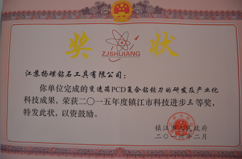 多年來,企業(yè)通過ISO9001國際質(zhì)量體系認(rèn)證,被中國中輕產(chǎn)品質(zhì)保中心授予“全國金剛石制造行業(yè)質(zhì)量放心滿意單位”,獲得江蘇省高新技術(shù)企業(yè)稱號(hào),榮獲江蘇省小巨人稱號(hào),變速箱PCD復(fù)合鉆鉸刀獲省高新技術(shù)產(chǎn)品等等。